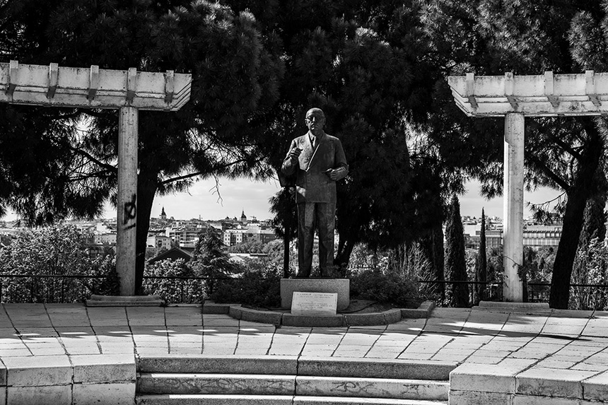 Seguimos el recorrido en el punto donde terminamos el capítulo anterior, esto es, en el Planetario de Madrid, en pleno parque de Enrique Tierno Galván. Muy cerca de allí, hacia el norte, se encuentra el monumento a Enrique Tierno Galván, popular alcalde socialista de la ciudad de Madrid entre los años 1979 y 1986