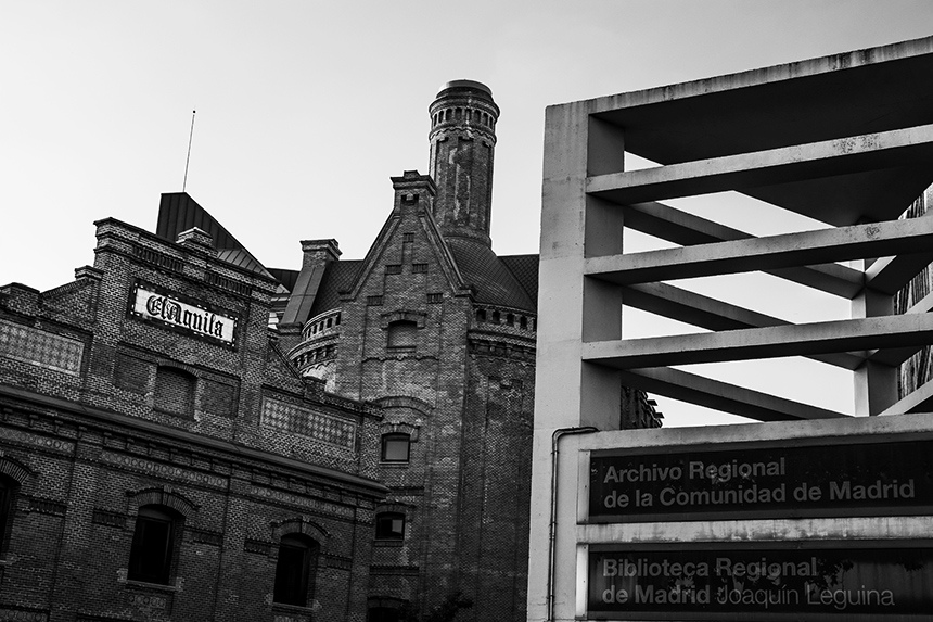 La calle de Ramírez del Prado corre paralela a la fachada norte de la estación de Cercanías en dirección a la ya visitada Plaza del Amanecer. Mucho antes de llegar a esa plaza, -y mucho más cerca de la estación de Cercanías-, está el Archivo Regional de la Comunidad de Madrid, ubicado en una antigua fábrica de Cervezas El Águila.